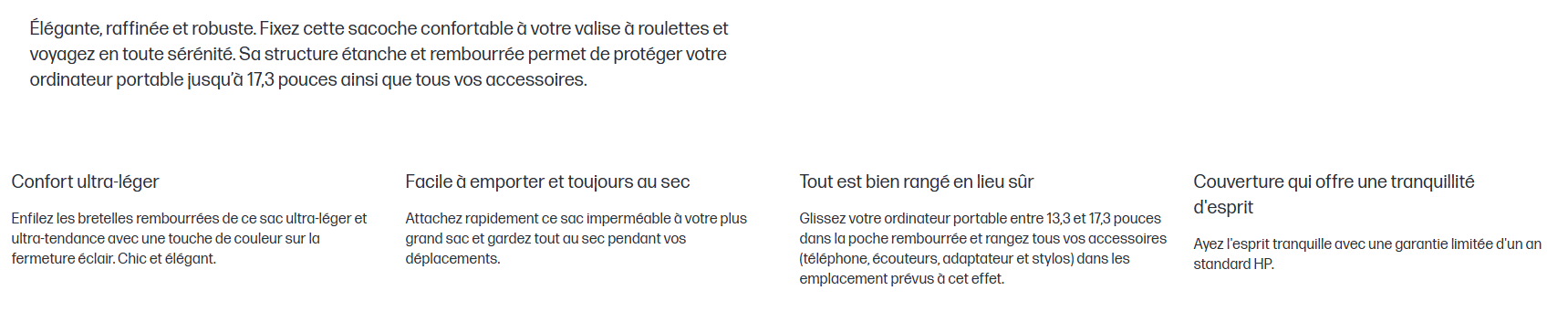 Taille de l'écran (diagonale)17.3" Dimensions minimales (L x P x H)44 x 6,5 x 32 cmDimensions de l'emballage (L x P x H)44 x 6,5 x 32 cmContenu de l'emballageSacoche pour ordinateur portableGarantie fabricantGarantie limitée d'un an. Poids0,37 kgPoids du carton/paquet0,37 kgFonctions spécialesLavage et séchage à l’air
